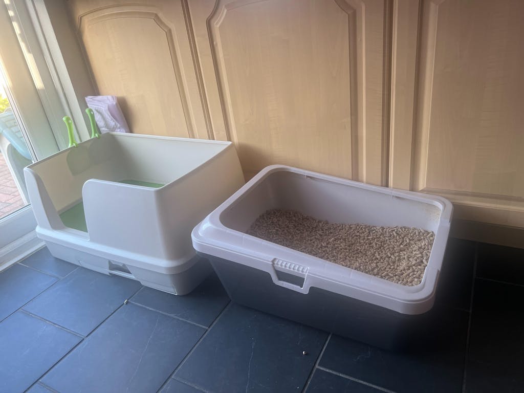 I’m so glad I came across this while searching for a wooden pellet litter box. I have the well-known P brand—one large and one small—and I was constantly getting frustrated with pee going outside the box. That’s why I decided to try this one as replacement for the smaller one, and the results have been amazing, far beyond my expectations. I had to bring the other brand all the way from Canada and USA, and I wish I had known that such a high-quality option was already easily available in the UK. Even now, my cats still have the occasional accident with the large box from the other brand, but with this one, there hasn’t been a single mishap. In fact, based on how the pellets are used, I can tell both of my cats prefer this box over the other.